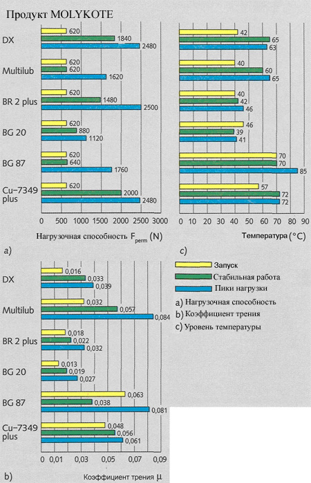 Для этого типа подшипников подбор смазки с учетом нагрузочной способности, коэффициента трения и температуры подшипника может быть выполнен с помощью данных, представленных на Рис. 20.
